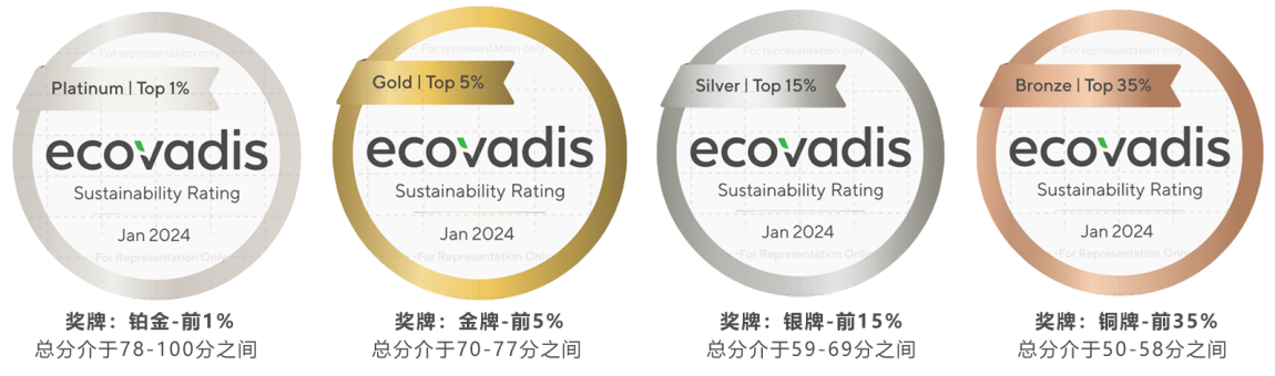 EcoVadis奖牌计划将颁发给那些已经完成了EcoVadis评估程序,并展示出了相对优势的、符合可持续性标准管理系统的合格公司。